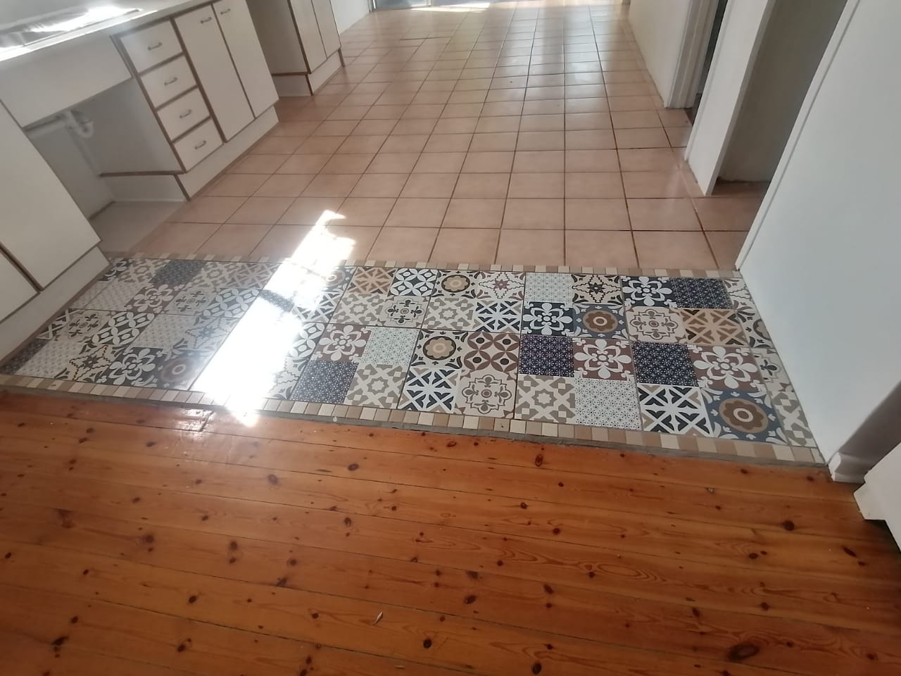 Open plan Kitchen and Dining area with beautiful flooring