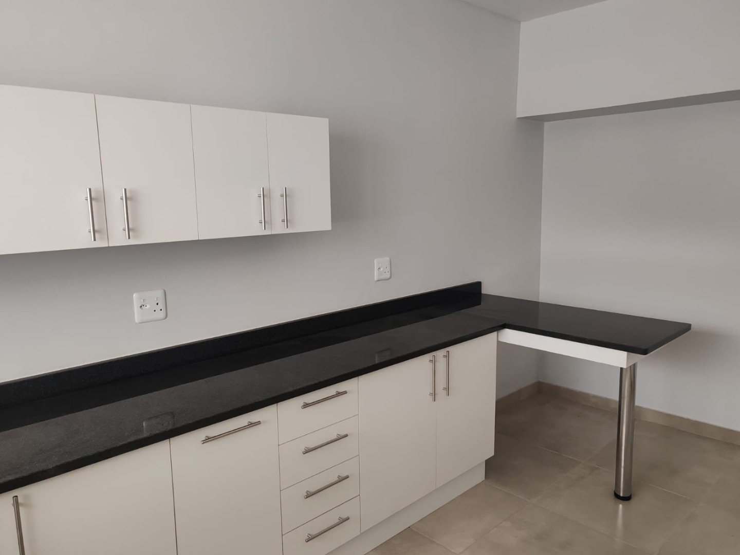 The Kitchen has built in cupboards, tiled floors. We regret - no stove.
