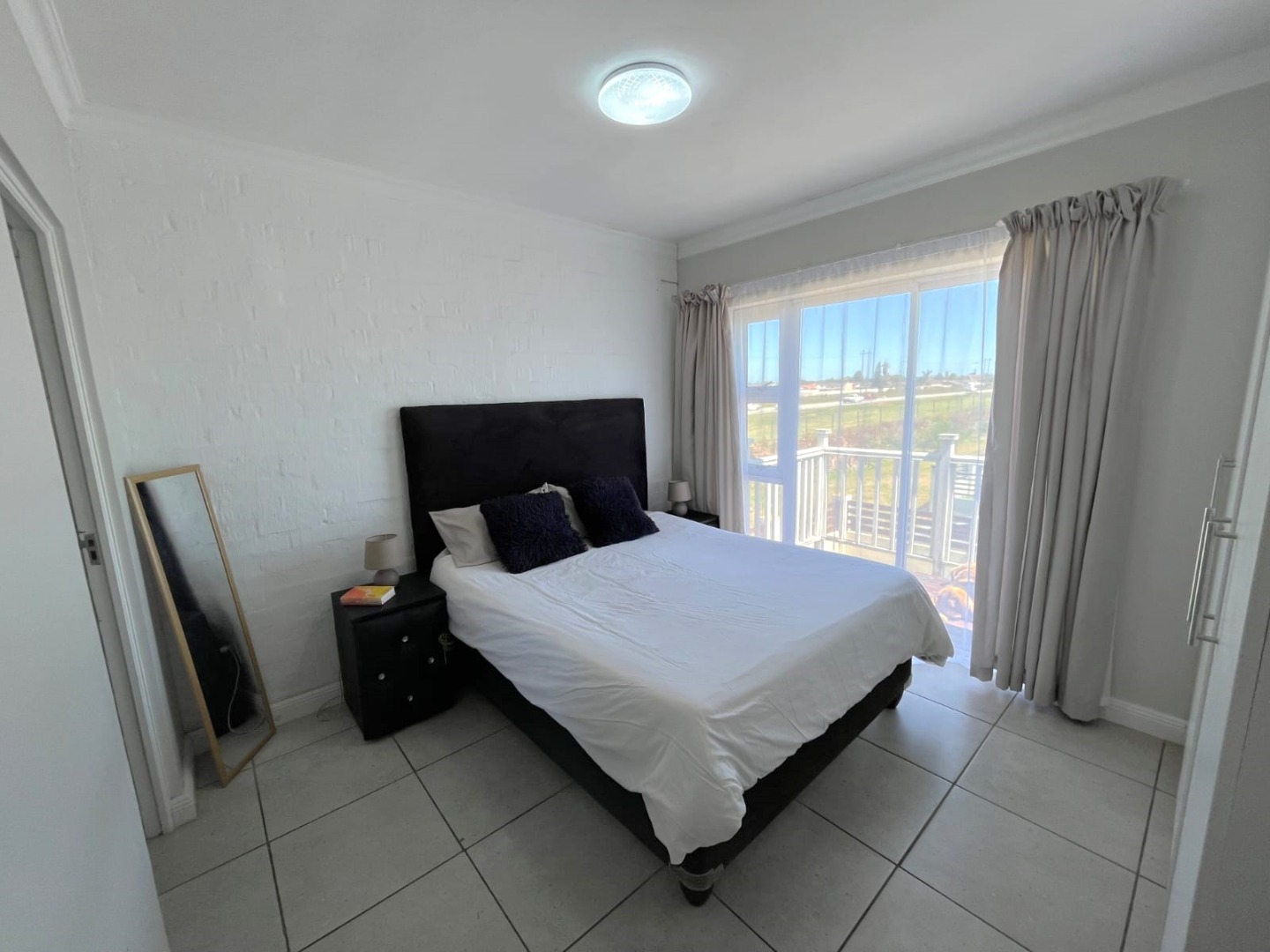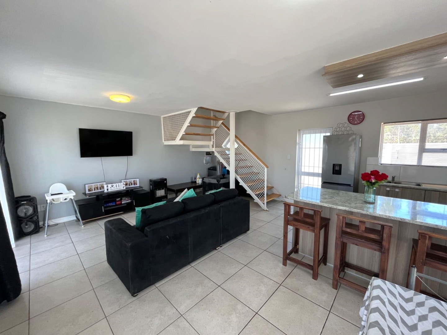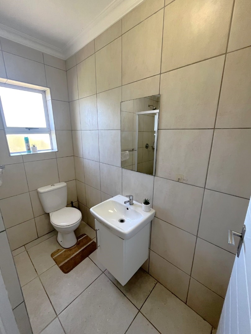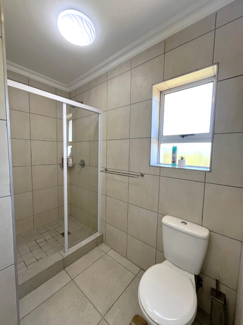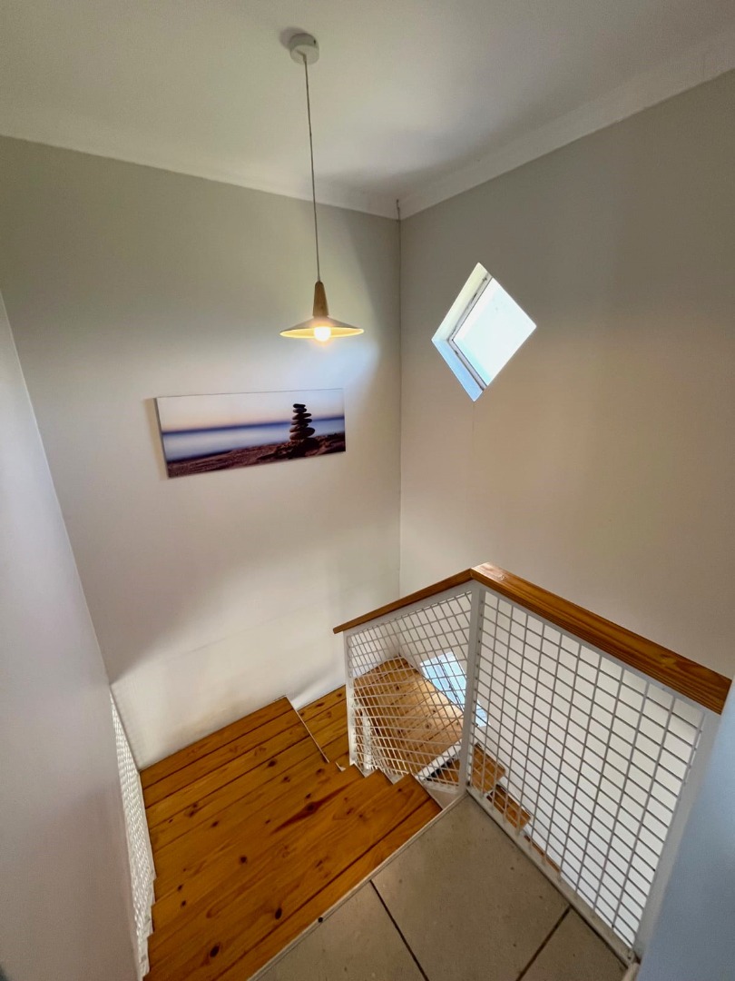 The property features two well-sized bedrooms with built-in cupboards, including a main bedroom with en-suite and balcony with stunning views. You will also find a bathroom fitted with a shower for added convenience Upstairs.