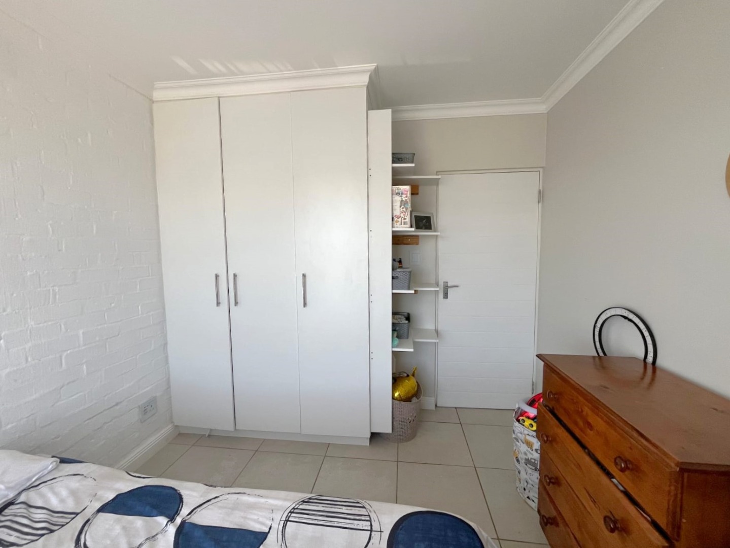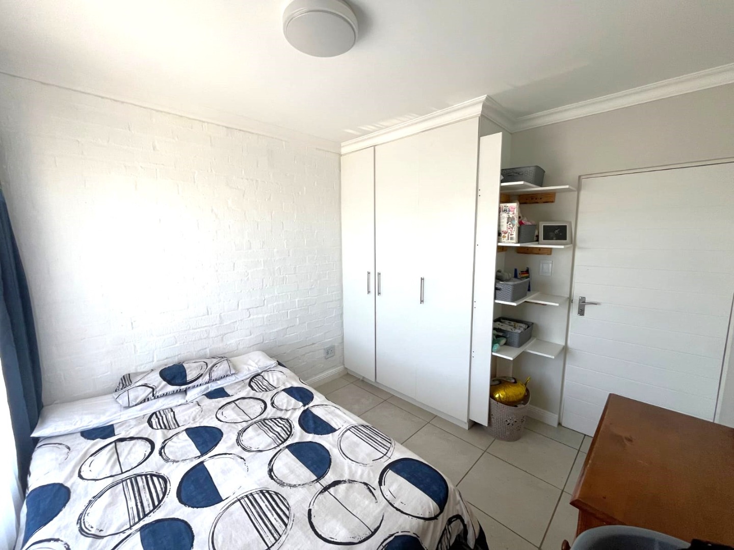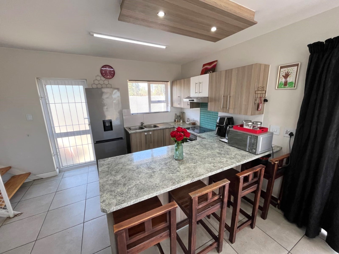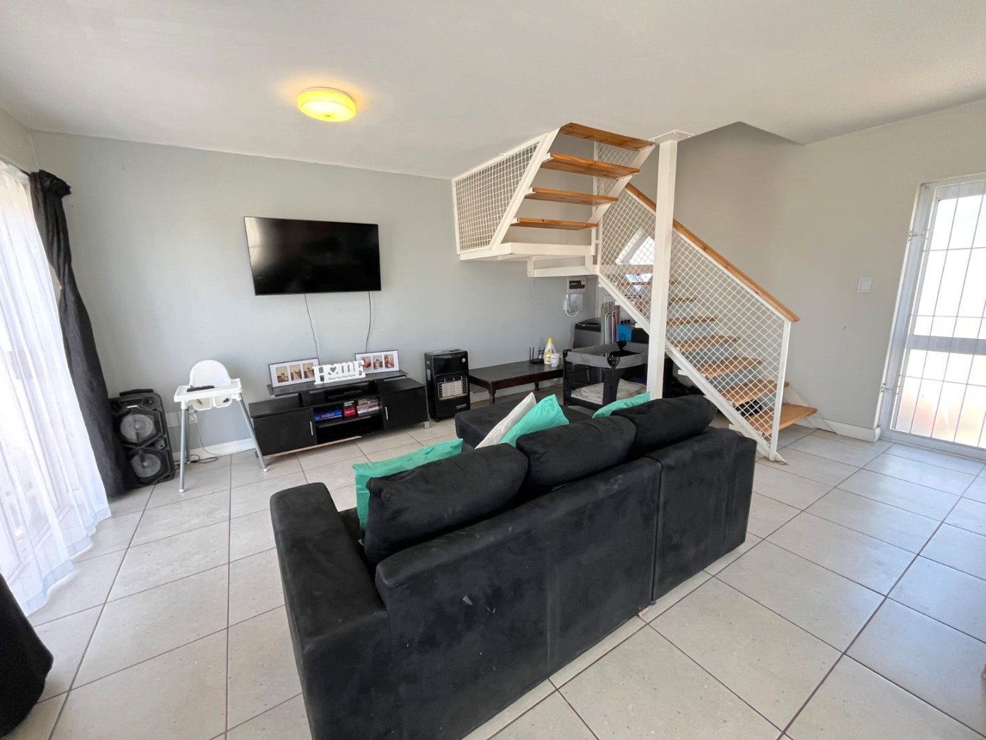 The property features two well-sized bedrooms with built-in cupboards, including a main bedroom with en-suite and balcony with stunning views. You will also find a bathroom fitted with a shower for added convenience Upstairs.