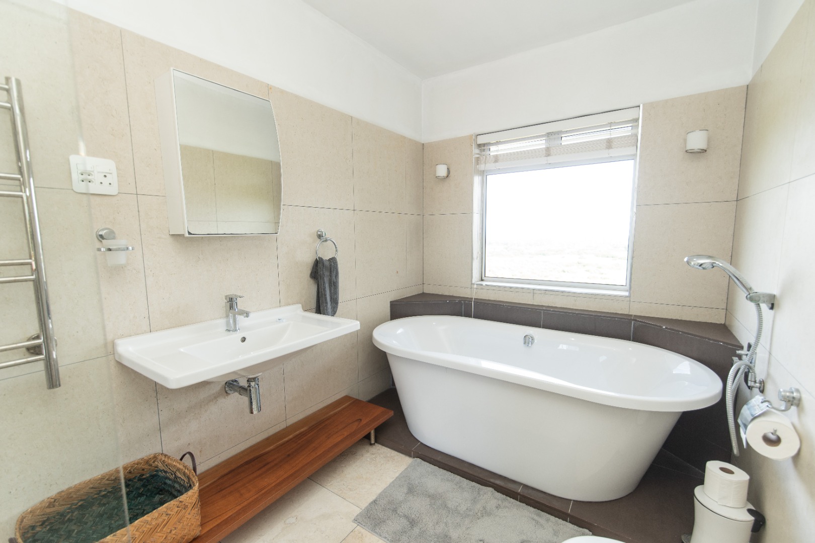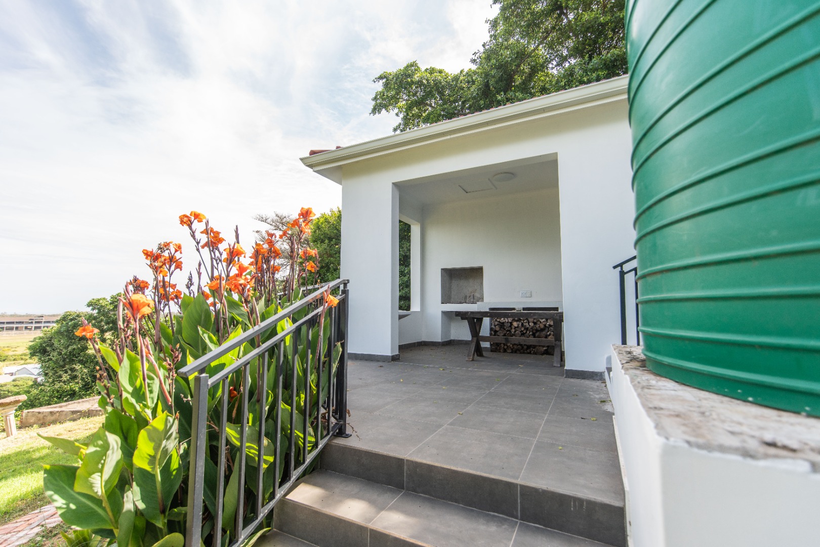 Step outside to a private patio, offering a tranquil space to relax and enjoy the scenic views. Security is a priority, with burglar bars and a security gate providing peace of mind within the complex. Modern amenities include fibre internet connectivity and a borehole, ensuring reliable services.